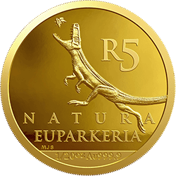 The five coins in the 2018 Natura series, aptly named “Rise of the Dinosaurs” will be available in 1oz with a face value of R100 as well as in fractionals – ½oz with a face value of R50, ¼oz with a face value of R20, 1/10oz with a face value of R10 and 1/20oz with a face value of R5, with each depicting a different archosaur, all in limited mintages.
