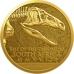 CENTURION, South Africa, 03 September 2018 – The South African Mint has unveiled a stunning five-coin Palaeontology Collection in 24-carat gold. The collection brings to life the ‘Archosauria’ – crocodiles, pterosaurs, dinosaurs and birds or the ruling reptiles that roamed and soared freely in Southern Africa some 200 million years ago.